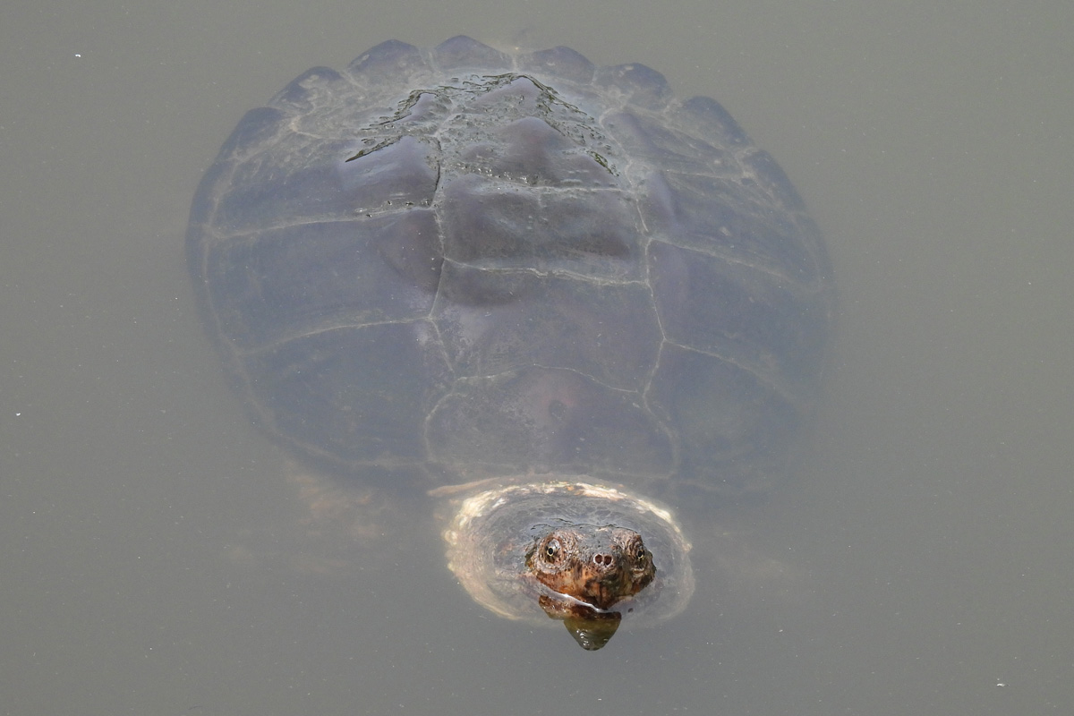 Our next stop was Mount Loretto Unique Area. This time we began by walking through a meadow, where we spotted Red-winged Blackbirds singing and moving among the grasses and a Tree Swallow family in a tree. We paused to observe some dragonflies along the path, and then headed to a platform overlooking a large pond, where an enormous snapping turtle swam towards us, looking at us expectantly; we concluded that it was accustomed to being fed. We were excited to see Least Terns hovering over the water and plunging for food; there were four of them, and they were unexpected. There were also Great Egrets, a Green Heron, and several Ospreys flying by; singing Indigo Buntings, Warbling Vireos, and a Northern Mockingbird; and vocalizing Green Frogs and Bullfrogs. We were unsuccessful at finding a Willow Flycatcher, but we were rewarded with the song (and view) of a Blue Grosbeak, and a Yellow-billed Cuckoo was heard.