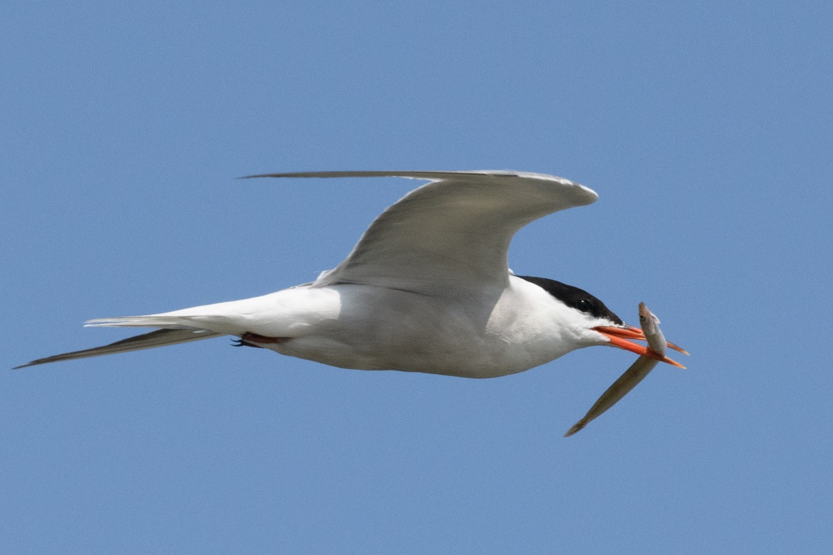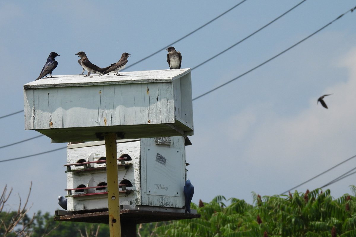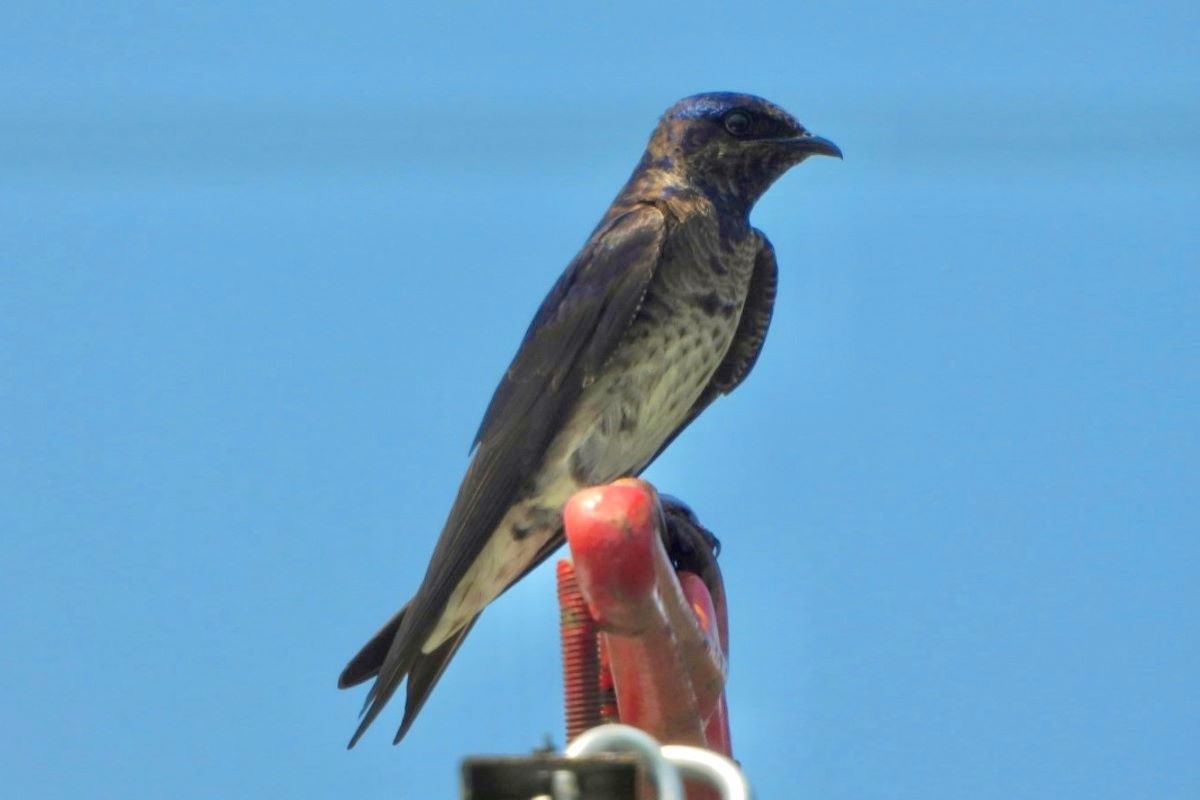 Following lunch, we headed to Lemon Creek Park, where there is a long-established Purple Martin community. We learned that the initial housing was built in 1953 by the ornithologist Howard Cleaves, and the structures have been maintained by volunteers ever since. The houses were vibrant with many Purple Martin adults and chicks. Above the adjacent water channel (Lemon Creek) we saw our first Forsterās Terns of the day.