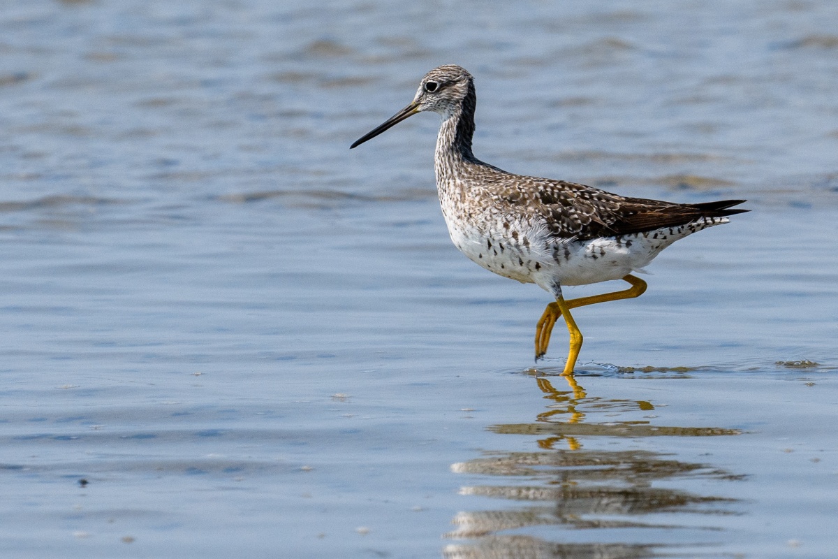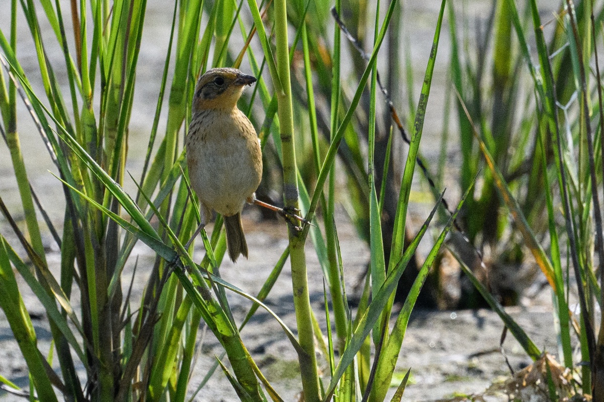 It was a perfect day for birding on the mudflats at Cupsogue County Park in Suffolk Countyāclear skies, cool breezes, and an expert leader, Eileen Schwinn. We started walking out to the mudflats at 8:30, about two hours before low tide, encountering several species of passerines, including warblers, in the pine trees along the road. Just before reaching the campground, we turned toward the bay and saw that the sandbars and shoreline were loaded with gulls, terns, and shorebirds. We saw all five expected species of gulls, as well as four species of terns, including nineteen Royal Terns. Eleven species of shorebirds were observed, as well as many Great and Snowy Egrets, Great Blue Herons, and Black Skimmers. It was a real treat to see two Seaside Sparrows and a Saltmarsh Sparrow in the marsh, as well as a Clapper Rail. When the tide started to come in, we started walking back to the parking lot and enjoyed lunch together before returning to the city.