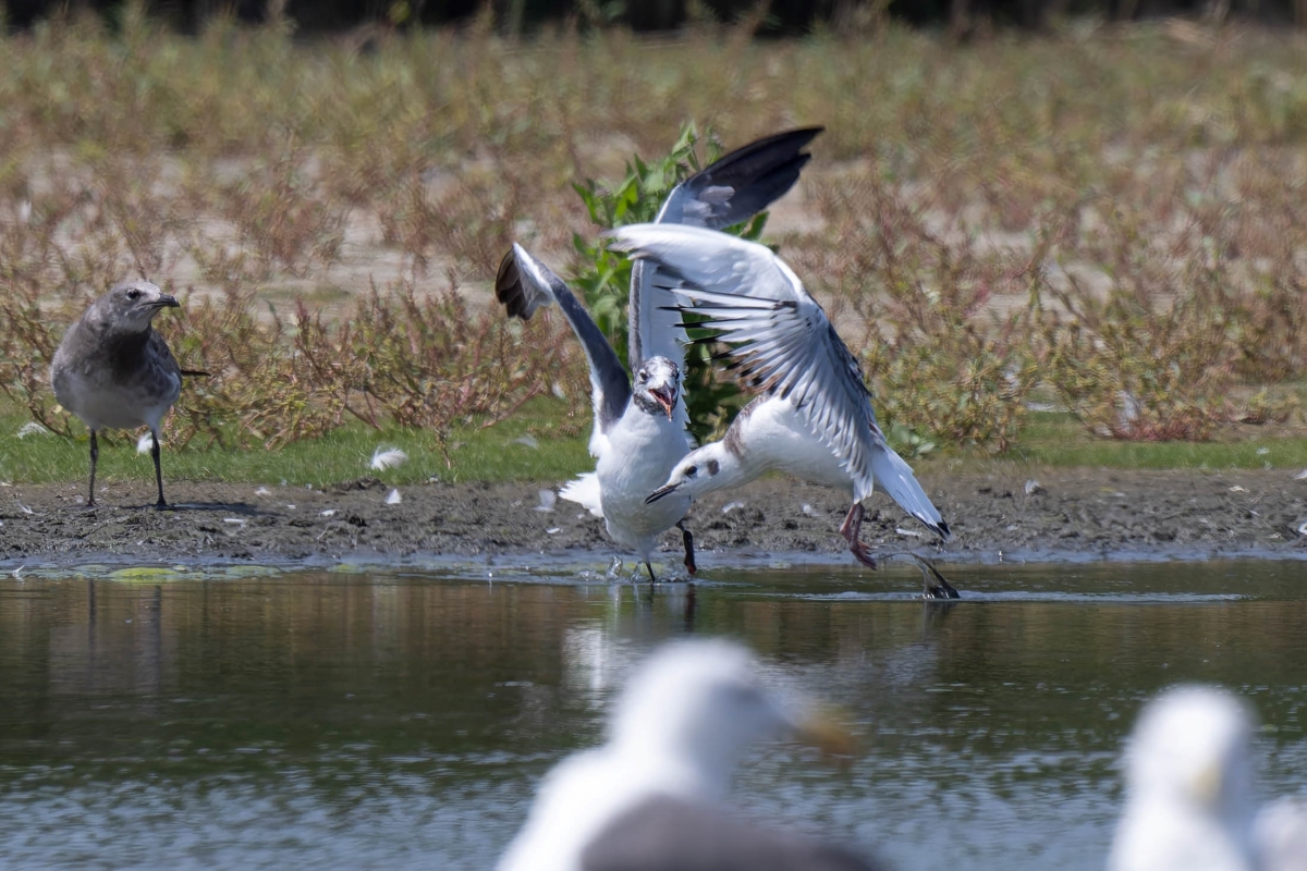 We then headed to the south end of the East Pond. Highlights seen there included many shorebirds: Red-necked Phalarope, Lesser Yellowlegs, Greater Yellowlegs, Ruddy Turnstone, Stilt Sandpiper, White-rumped Sandpiper, Least Sandpiper, Pectoral Sandpiper, Western Sandpiper, Semipalmated Sandpiper. Also seen were Bonaparte’s Gull, Black Skimmer, several Caspian Terns, and many duck species as well. We thought we might have a Baird’s Sandpiper, but after examining pictures and conferring with the e-bird reviewer, we decided that we didnāt have enough evidence to confirm our sighting and blamed the mirage bird on the heat and the long day.