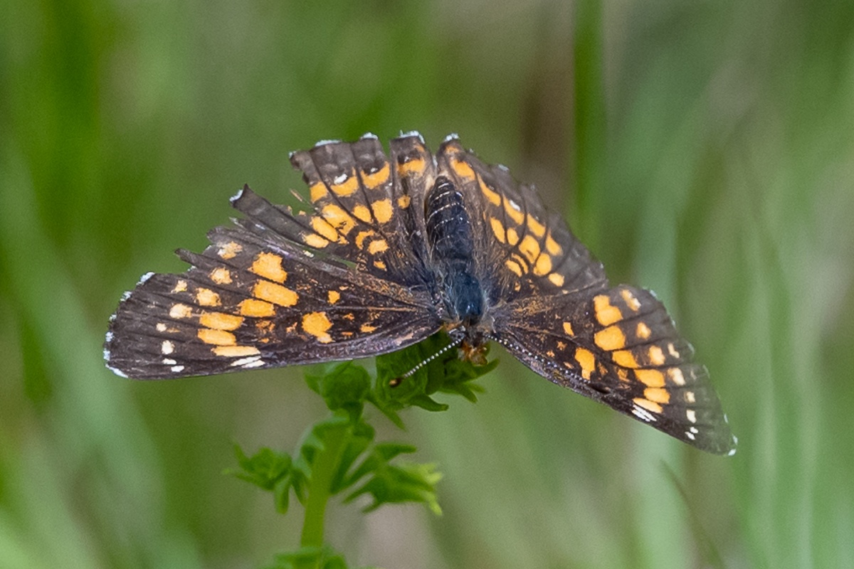 We were captivated by excellent views of larger butterflies. The Appalachian Brown is a special butterfly of sedge meadows, a target species at Ward Pound Ridge. Other colorful butterflies included three Question Marks, two Red-spotted Purples, some little Eastern-tailed Blues, and Summer Azures, Pearl Crescents, and the special butterfly we were anxiously awaiting to see: the Harris’ Checkerspot.