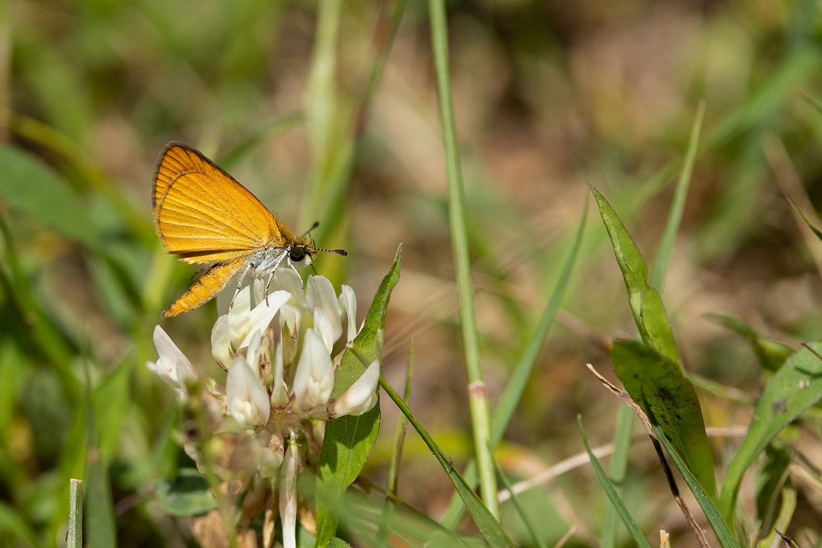 These little creatures all captured our attention, from the tiny Least Skippers to the European Skippers, Packs Skippers, Hobomok Skippers, and the Long Dashes. Rick also found an attractive larger skipper, the Hoary Edge, though the date was early for this species at WPR. Little Wood Satyrs were abundant and very active, but rarely landed for a photograph.