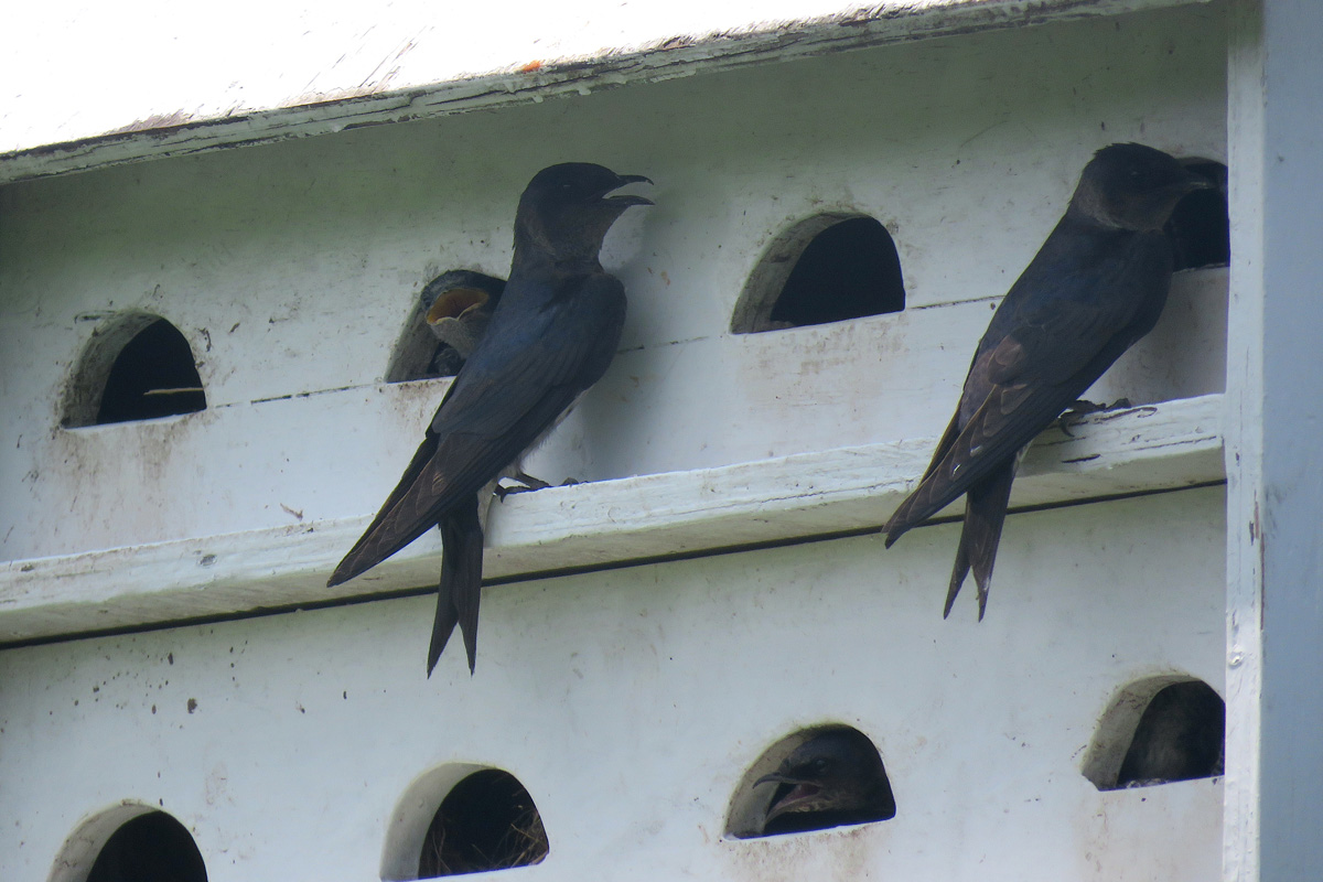Following lunch, we headed to Lemon Creek Park, where there is a long-established Purple Martin community. We learned that the initial housing was built in 1953 by the ornithologist Howard Cleaves, and the structures have been maintained by volunteers ever since. The houses were vibrant with many Purple Martin adults and chicks. Above the adjacent water channel (Lemon Creek) we saw our first Forster’s Terns of the day.