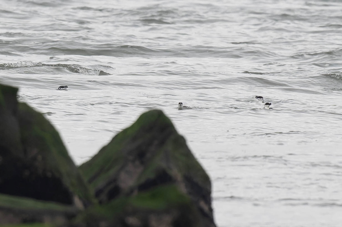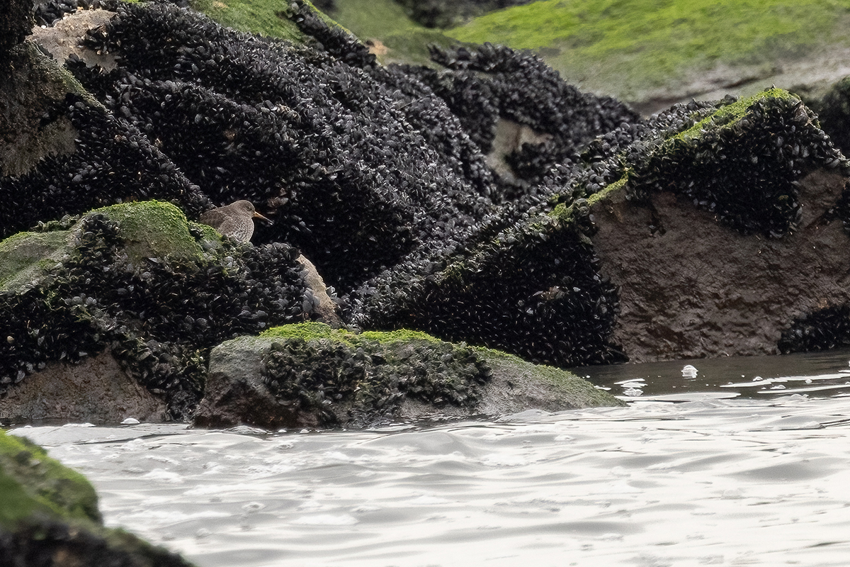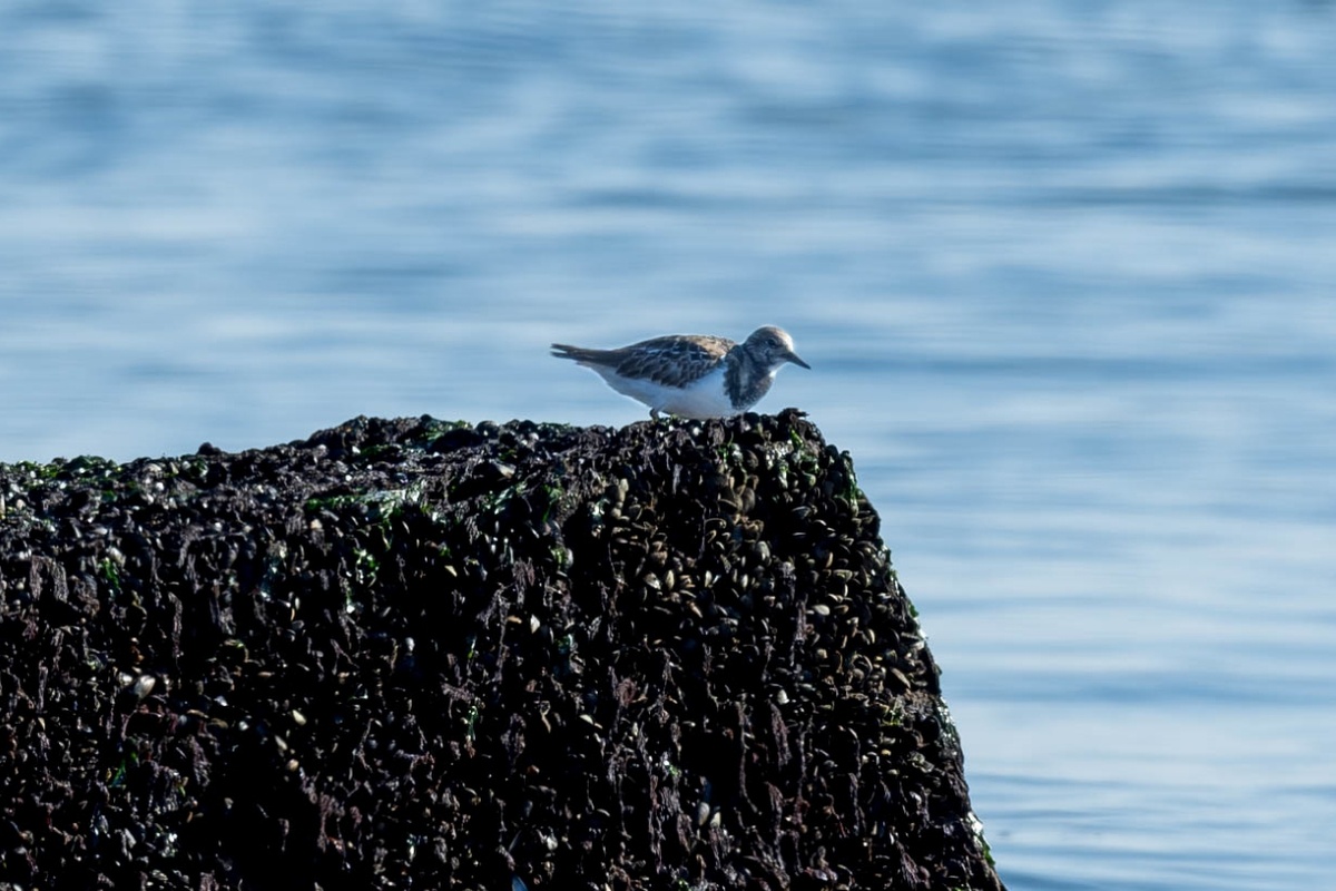 Our walk down the Breezy Point 4×4 Trail was challenging at times due to partial flooding, but the group stuck together and helped each other make it through to the beach. Along the way, we were rewarded with quick views of an Orange-crowned Warbler and excellent closeups of an American Pipit. On the beach we once again saw the Long-Tailed Ducks, loons, scoters, and Sanderlings. Arriving at the jetty, we had incredible views of Razorbills and a Purple Sandpiper tucked away in the rocks. On the walk back, we saw Great Cormorants, as well as starfish, whelks, and other shellfish.