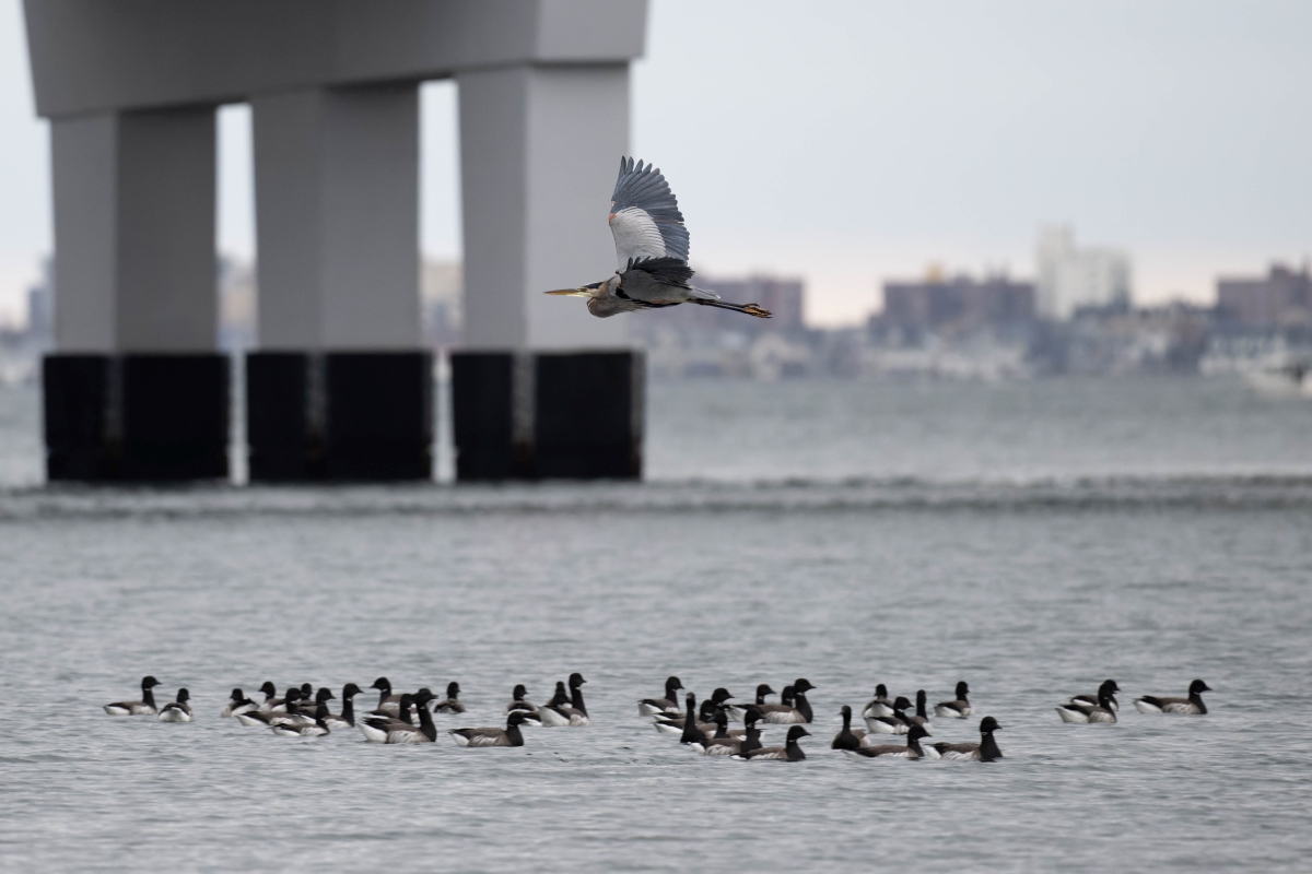 As in past years, we started the Breezy Point trip at Fort Tilden, which was a very productive meeting place. While gathering in the parking lot, we noticed multiple Brown-Headed Cowbirds mixed in with the European Starlings. From the beach, we saw a good number of Long-Tailed Ducks, both of the loon species we were expecting, each of the three expected scoter species, some Sanderlings, and a couple of Bonaparteās Gulls; we even had some distant views of Razorbills. On the way back to our cars, we saw some Horned Larks in the ballfields and a Peregrine Falcon perched on the Marine Parkway Bridge.