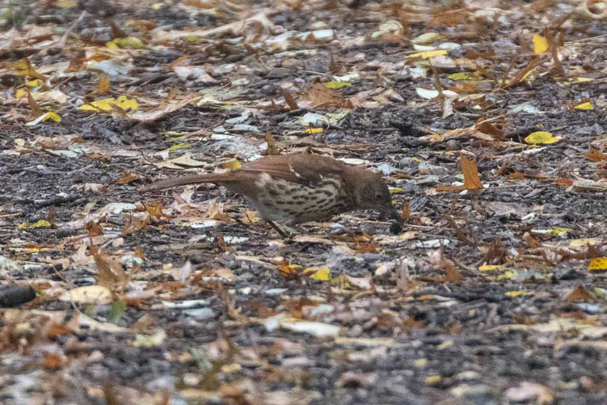 A large number of species were seen thanks to the persistence of the leaders and to the overlap of the fall and winter migrants. Fewer warblers were around but there were increasing numbers of sparrows. The unquestioned star was the Grasshopper Sparrow, which has been seen near the King Jagiello monument for five days; it was foraging determinedly, oblivious to the pedestrians only a foot or so away.