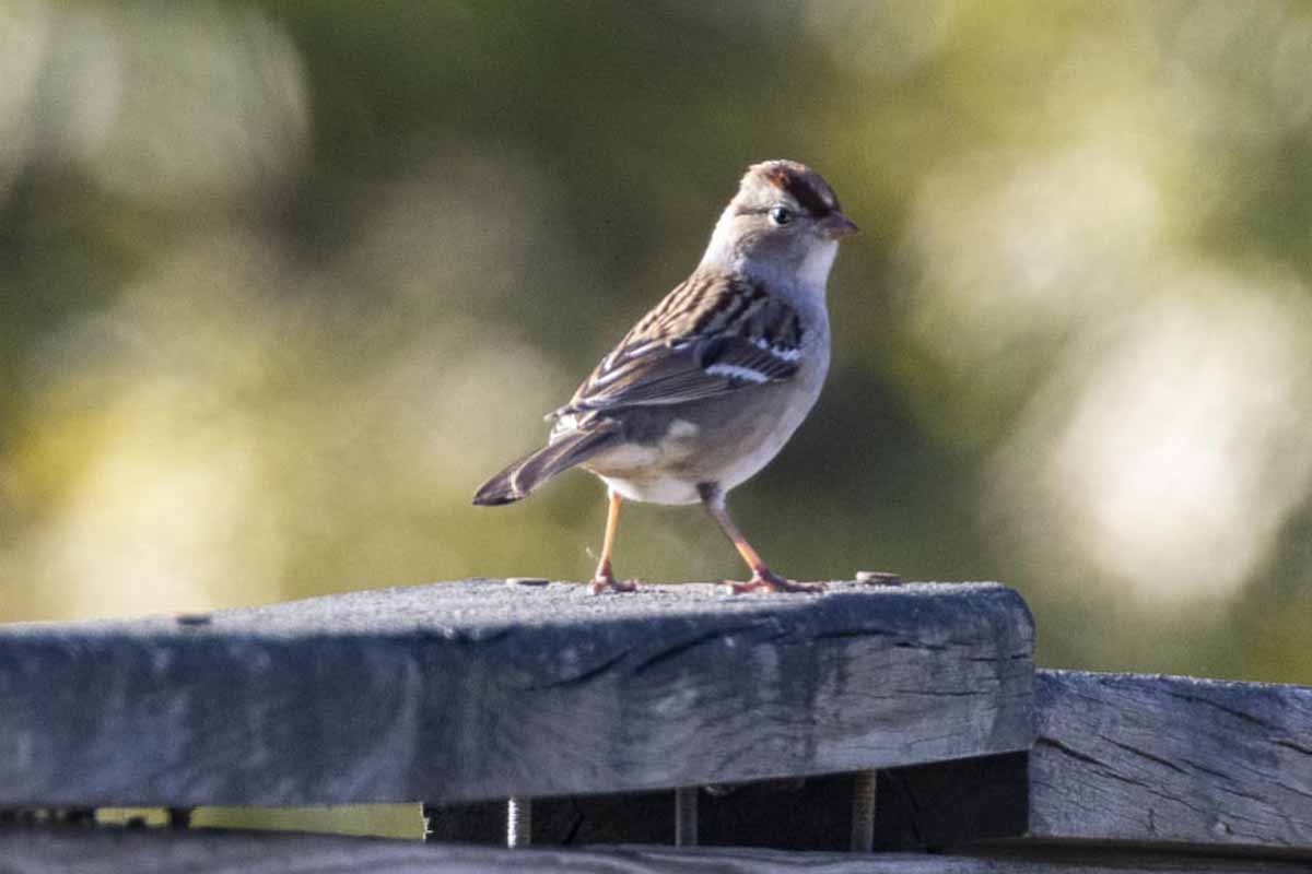 Soon after reaching the open ocean, we encountered Lesser Black-backed Gulls on the shore and spotted a flock of Sanderlings quickly flying by. The waves were irresistible and some of us ran into the ocean to enjoy the salty water while others remained on the lookout for birds. After some time (and for some of us, coaxing by our parents), we turned back toward the parking lot, where we noticed a different group of birders photographing a White-crowned Sparrow in the brush. Our group began to creep closer to the lovely little bird in hopes of capturing a photo but each time a car drove by the White-crowned Sparrow and the White-throated Sparrows accompanying it would flee back into the brush.