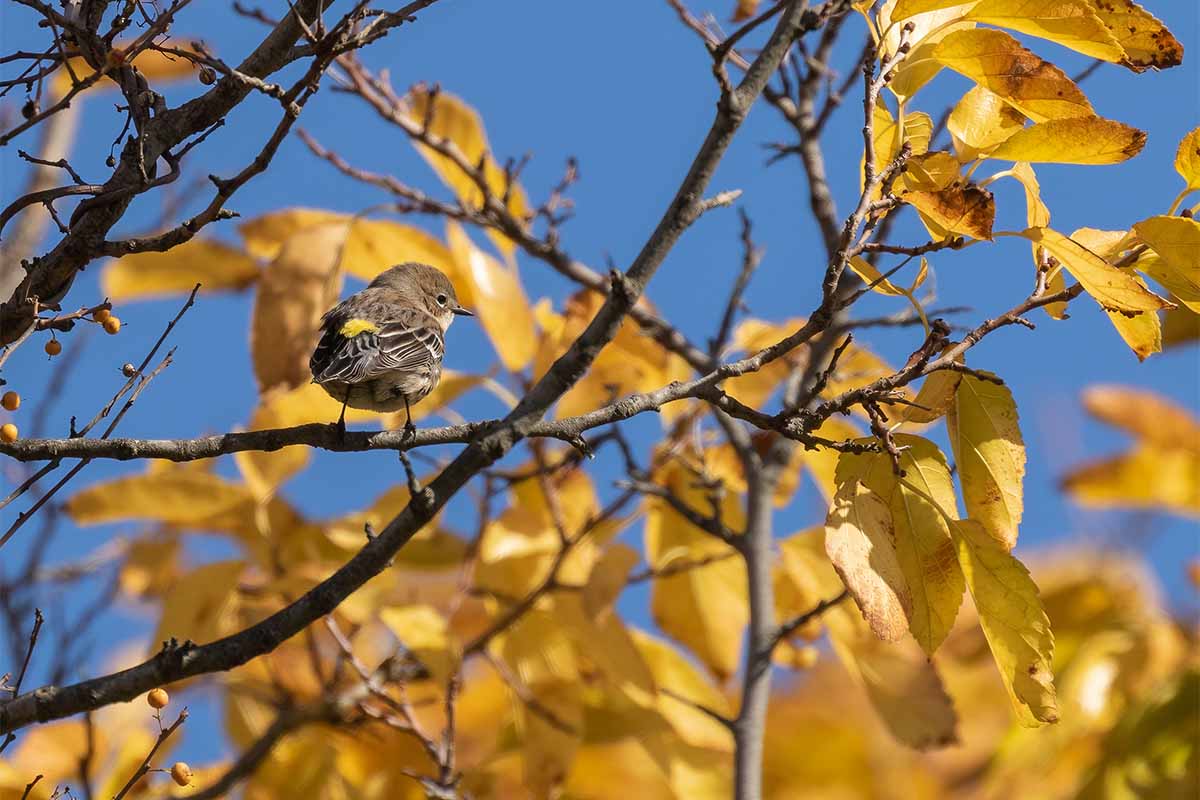 As we began taking in our spectacular surroundings on this warm October day, we spotted Yellow-rumped Warblers in the pines next to the parking lot and a flock of feeding House Finches. Then, an Indigo Bunting called as it flew overhead, and we noticed a Northern Cardinal hopping about. Suddenly, a Field Sparrow flitted out of the brush offering us a brief glimpse before retreating to its hiding spot.
