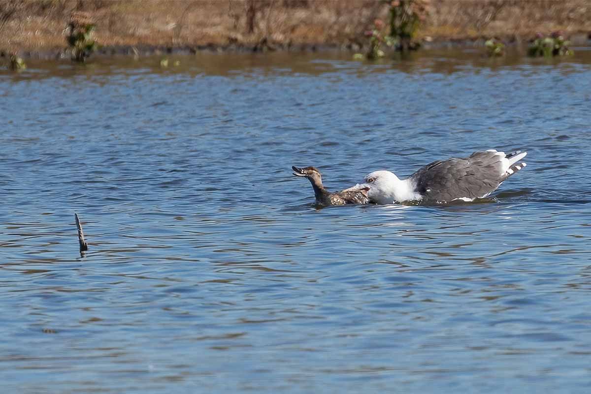 We then walked across Cross Bay Boulevard to check out the East Pond, where we found the water levels extremely high. We only made it to the first lookout, but it was a good spot where we found more ducks, including Northern Pintails, more Green-winged Teals, Gadwalls, and a Red-breasted Merganser. Along the far shore, we also saw some shorebirds, including Dunlins, Killdeer, and Greater Yellowlegs. Some of us were a bit appalled to see a Greater Black-backed Gull attack, kill, and proceed to eat a Ruddy Duck. As we were scanning the water, a Northern Harrier swooped overhead and caused a massive flight of gulls to lift off.