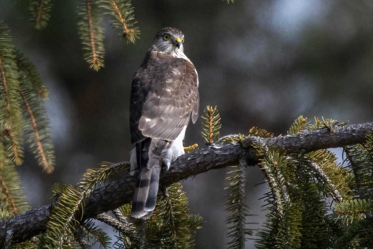 We proceeded to Croton Point Park, where the strong wind may have deterred several birds from showing themselves, but where we had flyover views of more Bald Eagles and a Red-tailed Hawk, saw Tree Sparrows foraging in the grass, and caught sight of an American Kestrel in some locust trees by the maintenance shed near the RV lot. A beautiful perched Bald Eagle gave us good views from a pine tree, and toward the end of the walk, sharp-eyed birders found Sharp-shinned and Cooper’s Hawks in distant trees.