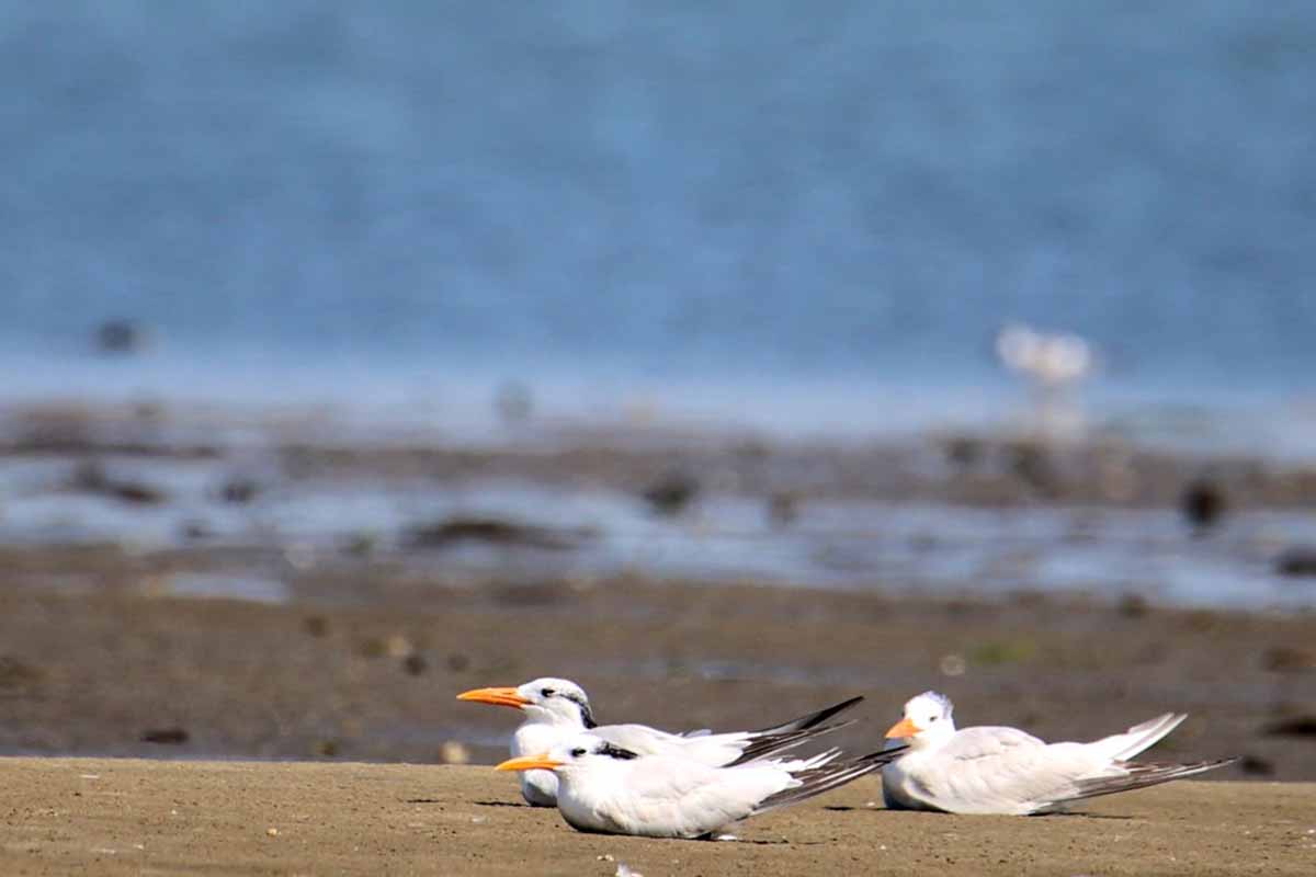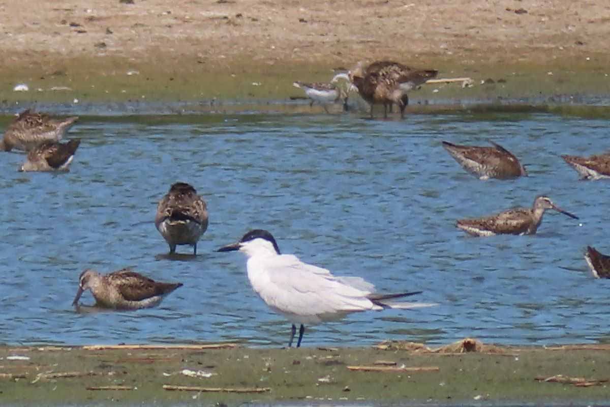 Arriving at the bay, we spotted an immature Clapper Rail on one of the ponds in the adjacent saltmarsh. Along the shoreline were numerous shorebirds, gulls, and terns, including Royal Terns (a āfirst-of-yearā species for many participants), Common Terns, and Least Terns. Large numbers of Black-bellied Plovers were present, as well as a few Piping Plovers.