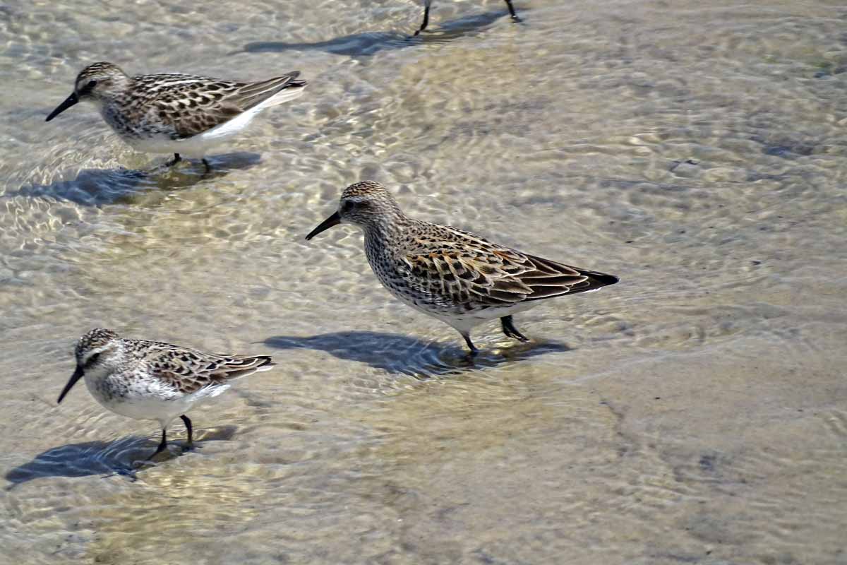 Under the expert leadership of Eileen Schwinn, an expert Long Island birder with extensive knowledge of local hotspots, we had a wonderful outing to Cupsogue County Park on Moriches Bay. We started our walk with a survey of the bay from the elevated platform between the beach and the parking lot. It was low tide, and seeing an abundance of shorebirds, we set out for the flats.