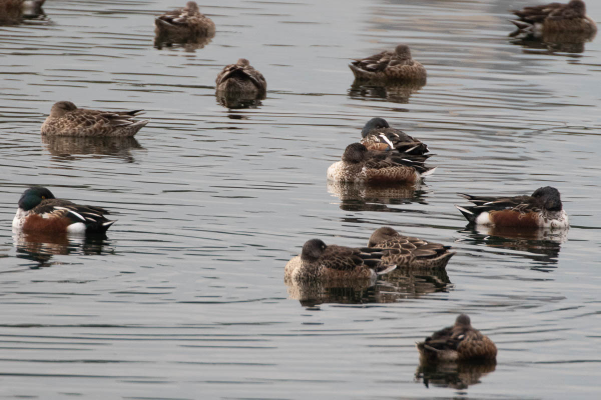 On a cool and cloudy fall morning with some light rain to begin the day, our group of 14 birders were able to see 53 species, including several late migrants and rarities. We met at the entrance parking lot but quickly moved to park near the grass nursery, where we looked for our first target speciesāthe Vesper Sparrow. None were visible then, but we did get a quick look at a fly-by Bobolink along with some other sparrows. We continued to walk through the Ecology Village, where we saw many Yellow-rumped Warblers and a female Black-and-white Warbler.