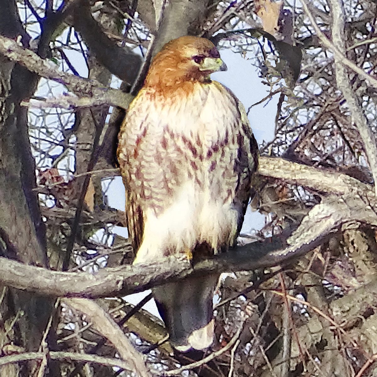 Our birding adventure began en route to Croton when we saw at least two perched Bald Eagles from the train. Bald Eagles turned out to be the highlights of the day. After leaving the train station, we saw another one sitting on a nest of twigs. It swooped down towards us, flying low overhead and giving us great views. Later we witnessed three Bald Eagles gliding overhead effortlessly on flat wings in the heavy wind.