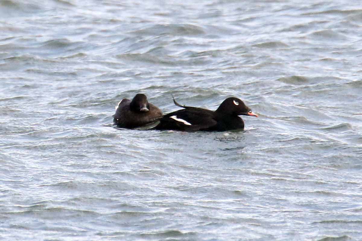 After a 45-minute walk, we arrived at the beach. We were greeted by large flocks of Sanderlings and several Long-tailed Ducks and female Black Scoters. Heading west along the beach we kept an eye on the upcoming jetty, where we saw 12 Great Cormorants and 8 Double-crested Cormorants, along with 13 Common Eiders (one relaxing on the beach) and more Black Scoters. Looking west over the rocks we saw two beautiful male Surf Scoters and later two female Surf Scoters. Adding to our duck list were three Buffleheads, one Red-breasted Merganser and four White-winged Scoters in flight.