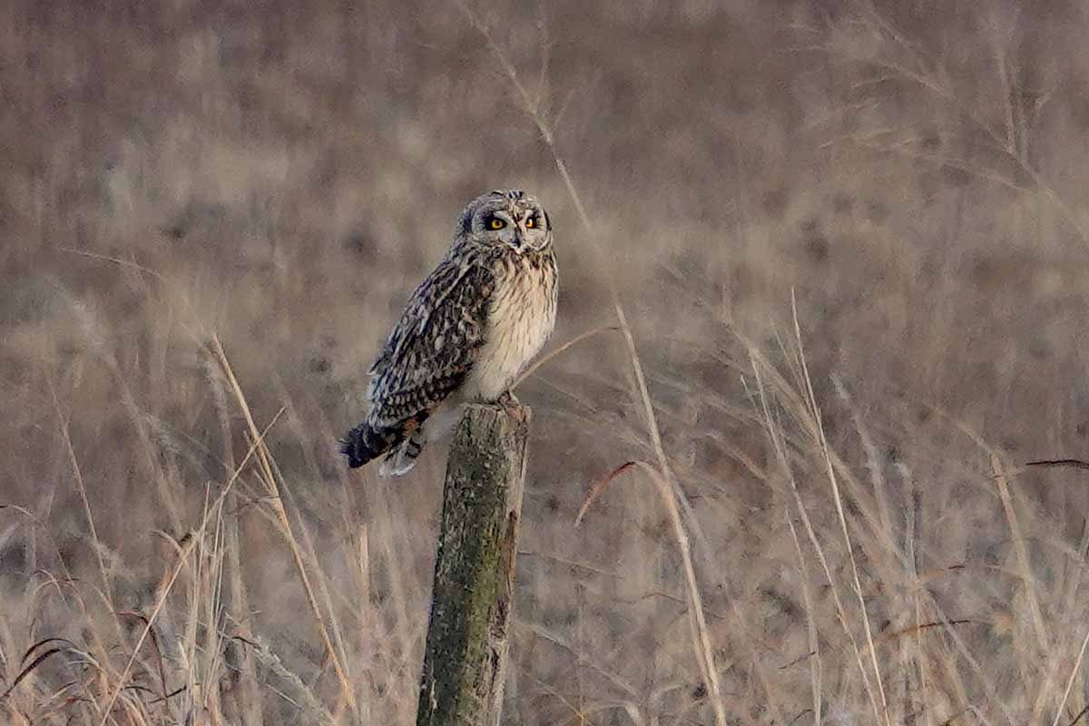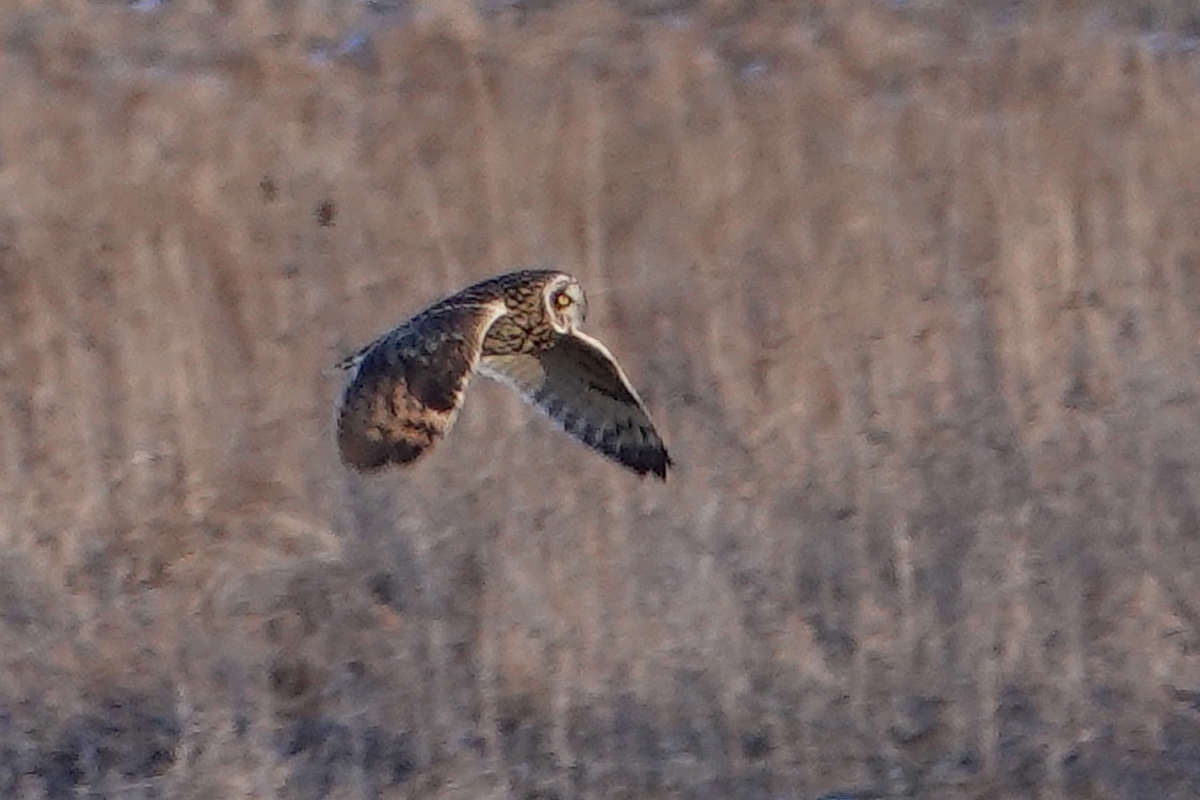 After a two-week postponement due to snow and ice on the original date, we finally had a clear, but very brisk day, for our trip to Ulster County. We started the day with a trail walk through the grass where we saw several Red-tailed Hawks and an American Kestrel, as well as an owl pellet. The feeders and the surrounding area held a nice collection of woodpeckers and passerines, including an American Tree Sparrow. Red-tailed Hawks, a Common Raven and Black Vultures were seen at Gale Park, and a Common Merganser, American Black Ducks and Canada Geese were seen from the Birch Road bridge over the Wallkill River. We returned to Shawangunk late in the afternoon for our target bird, the Short-eared Owl. We were not disappointed! Three owls put on a beautiful show, soaring around the grasslands to the delight of a large group of birders and photographers. Overall, we saw twenty-eight bird species, and all participants had life birds or year birds.