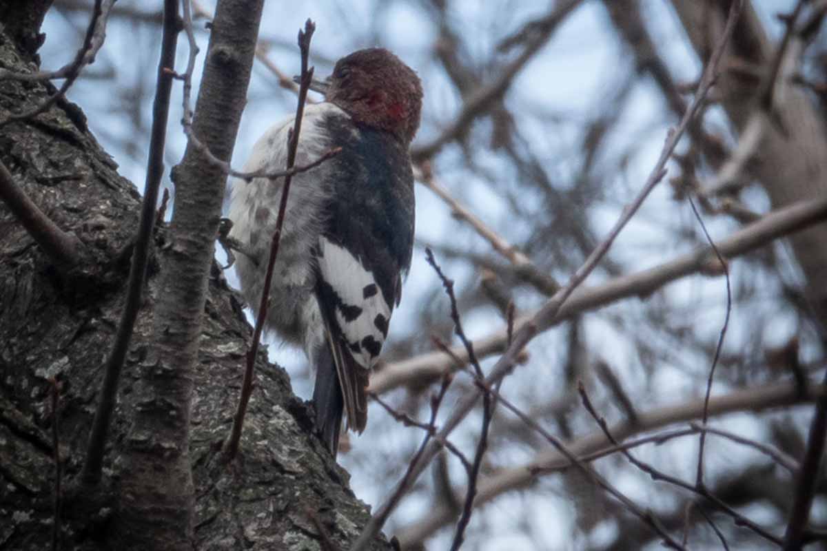 The trip included Strawberry Fields, north along the Lake, across Oak Bridge, into the Ramble, Maintenance Meadow, the Feeders, the Oven and to the Boathouse for an early lunch. From there, back to the Ramble, the feeders (in hopes of some Purple Finches – but no success), along Turtle Pond, to the Pinetum, along the west side of the Reservoir and up to the west side of the Ballfields near 97th Street to see the immature Red-headed Woodpecker. The hardy bunch of the group continued up to the Pool to try and find the female Green-winged Teal (also no success).