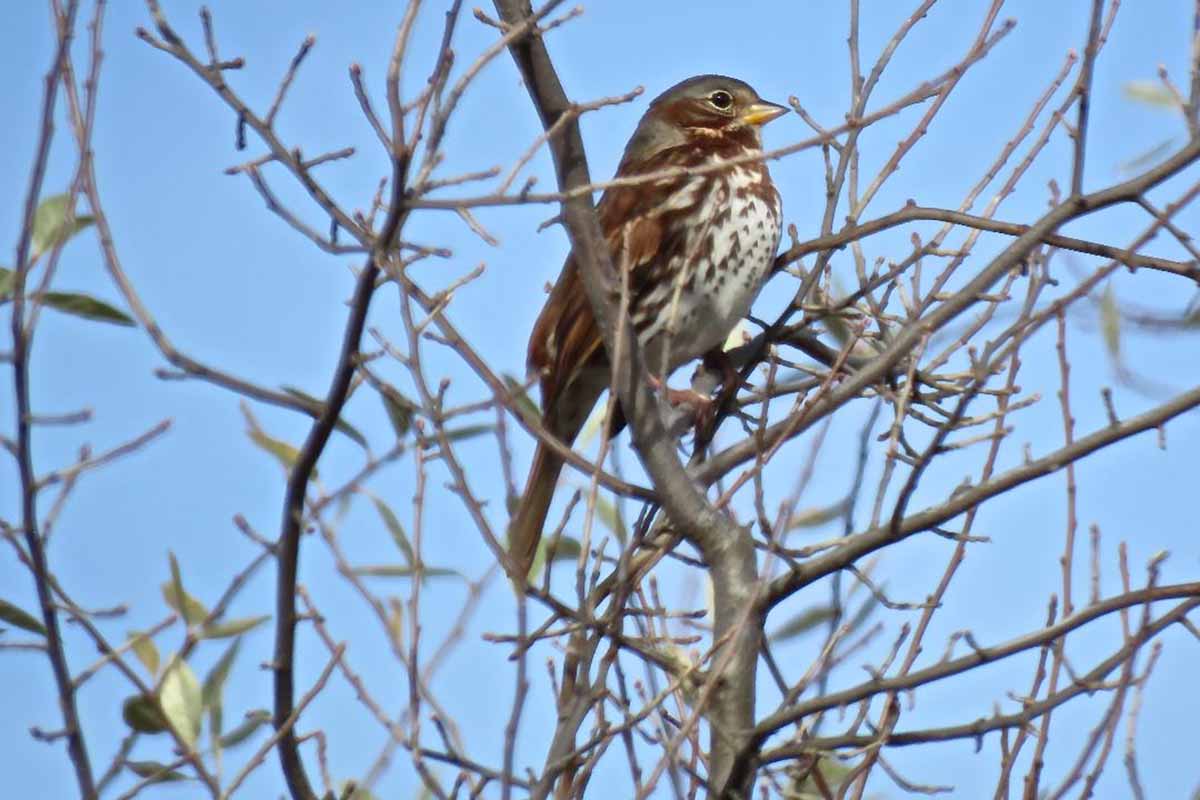 We began the morning at Rye Playland, where we studied a nice array of ducks, including Wood Ducks, Common Goldeneye and more. Then Tom brought us to Rye Ridge Shopping Center Pond. There we saw hundreds of geese. Tom surprised us by finding one White-fronted Goose. This lovely bird, which we were able to study for some time, turned out to be a “year bird” for all the attendees. We drove to The Marshland Conservancy, where we had lunch. There we enjoyed viewing both the Field and Fox Sparrows and a few in the group saw the American Tree Sparrow.