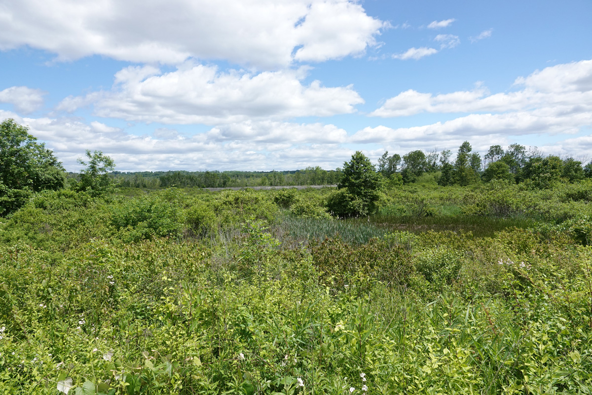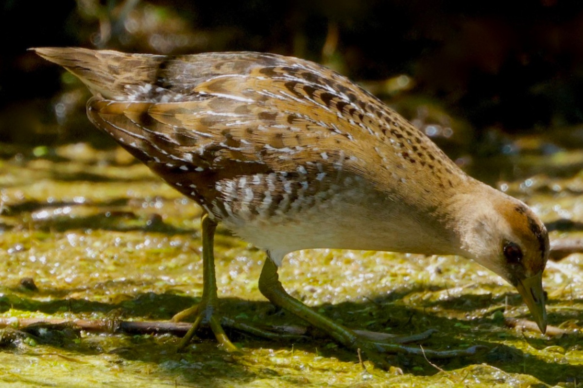 After a bathroom break, the group gathered for additional helpful instruction from Tom on late summer/fall and juvenile shorebird ID points. We then donned rubber boots and headed over to the East Pond where the water level had been running very high. Close to the first cutouts were numerous sandpipers, plovers, both yellowlegs and two Glossy Ibis, on the flats and in the shallow water, providing excellent comparisons among the species and plumages. The group then continued to walk north, getting better views of the visiting American White Pelican. The route still further north led to an Indiana Jones-type trek through nearly knee-deep water and a narrow, scratchy path surrounded by thick phragmites; while a few rubber boots met their demise, LSNY did not lose any participants! Finally, before leaving the East Pond, the group waited for the reported Sora to appear, and after some time, the Sora emerged and snacked for a while, oblivious to the excited crowd.