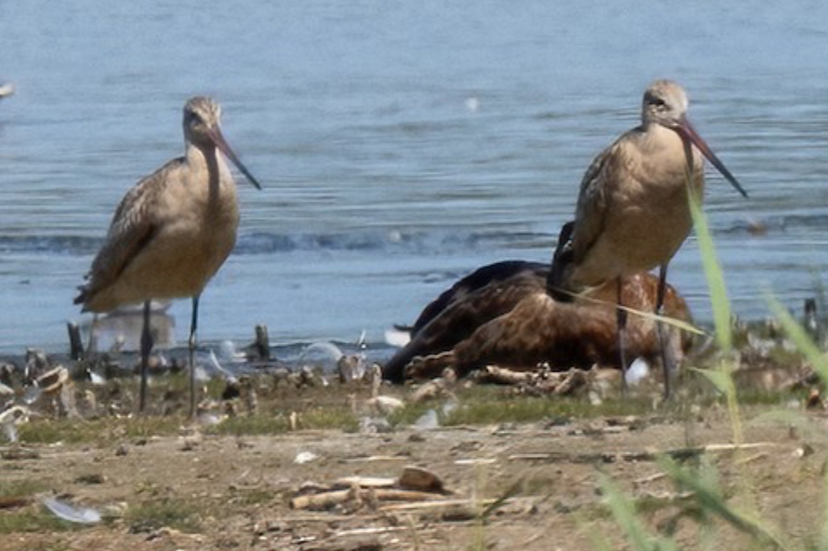 Finally, instead of sitting down to a late lunch before heading home, the group responded to a report of two Marbled Godwits back on the West Pond with a speedy return to those cutouts. A JBWR Park Ranger set up a scope and provided good looks at the the birds as they dozed and then stretched and preened. The trip concluded at about 3:00 pm.