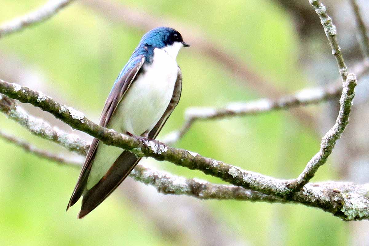 Along our way we heard but did not see several secretive, furiously singing Marsh Wrens, a second singing American Redstart for the day, and at least one calling Virginia Rail (“kiddick, kiddick…”)—but did see several singing Swamp Sparrows, along with a distant Pied-billed Grebe. A singing Willow Flycatcher (Fitz-BEW!) capped off the trip, providing the counterpart to our earlier Alder Flycatcher. (These two very similar species were once considered one—the “Traill’s Flycatcher”–and must be heard to be distinguished from one another in the field.)